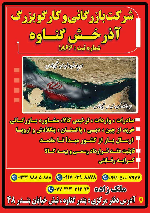 شرکت بازرگانی آذرخش گناوه با سالها تجربه در زمینه واردات و صادرات کالا، به عنوان یکی از برترین شرکتهای فعال در جنوب کشور شناخته میشود. این شرکت با بهرهگیری از کادری مجرب و حرفهای، توانسته است خدماتی گسترده و مطمئن در حوزه تجارت بینالملل، واردات ملوانی (ته لنجی) و صادرات کالا ارائه دهد. حضور دفاتر فعال این شرکت در کشورهای چین، دبی، پاکستان، بنگلادش و اروپا، امکان خرید و ارسال کالاهای تجاری به سراسر دنیا را برای تجار و بازرگانان ایرانی فراهم کرده است.
